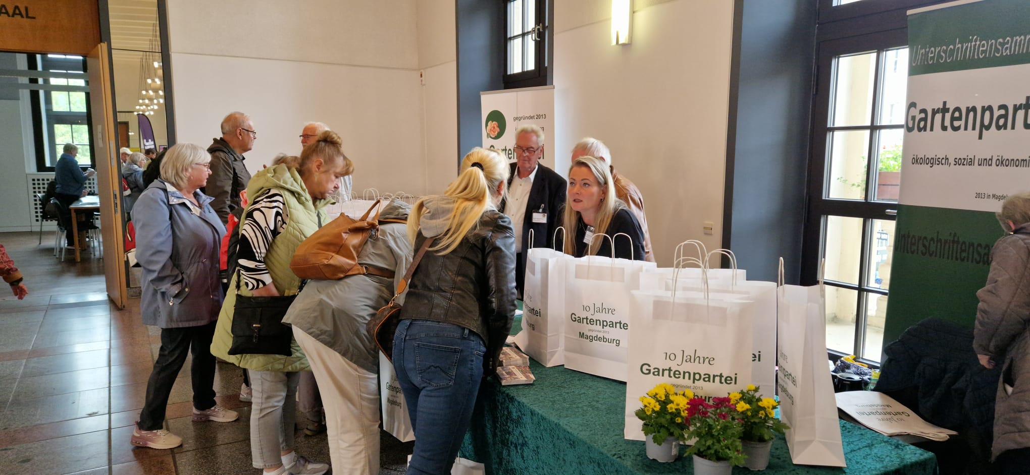 Unsere Stadtratsfraktion Gartenpartei informierte interessierte Bürgerinnen und Bürger auch in diesem Jahr auf dem Rathausfest wieder über ihre Arbeit im Stadtrat. Wie in jedem Jahr hatten wir reichlich Blumen im Gepäck, um den Magdeburgerinnen und Magdeburgern unseren Dank für ihr Vertrauen auszudrücken. Wir konnten wieder sehr gute Gespräche führen und uns über viele Themen rund um unsere schöne Landeshauptstadt mit den Gästen an unserem Stand austauschen. Kritische Anmerkungen zu Vorgängen in Magdeburg gab es natürlich auch. Diese nehmen wir zum Anlass, uns in den nächsten Wochen darum zu kümmern, dass es bald besser läuft.